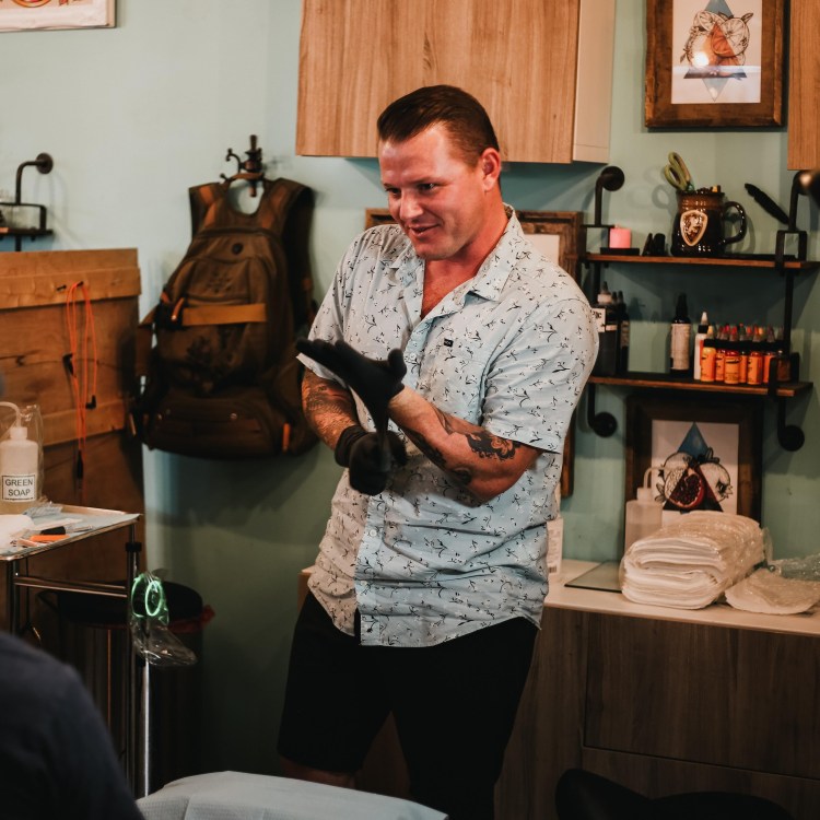 Cody focuses in blackwork and soft shading & enjoys tattooing anything from shapes and objects to organic forms.